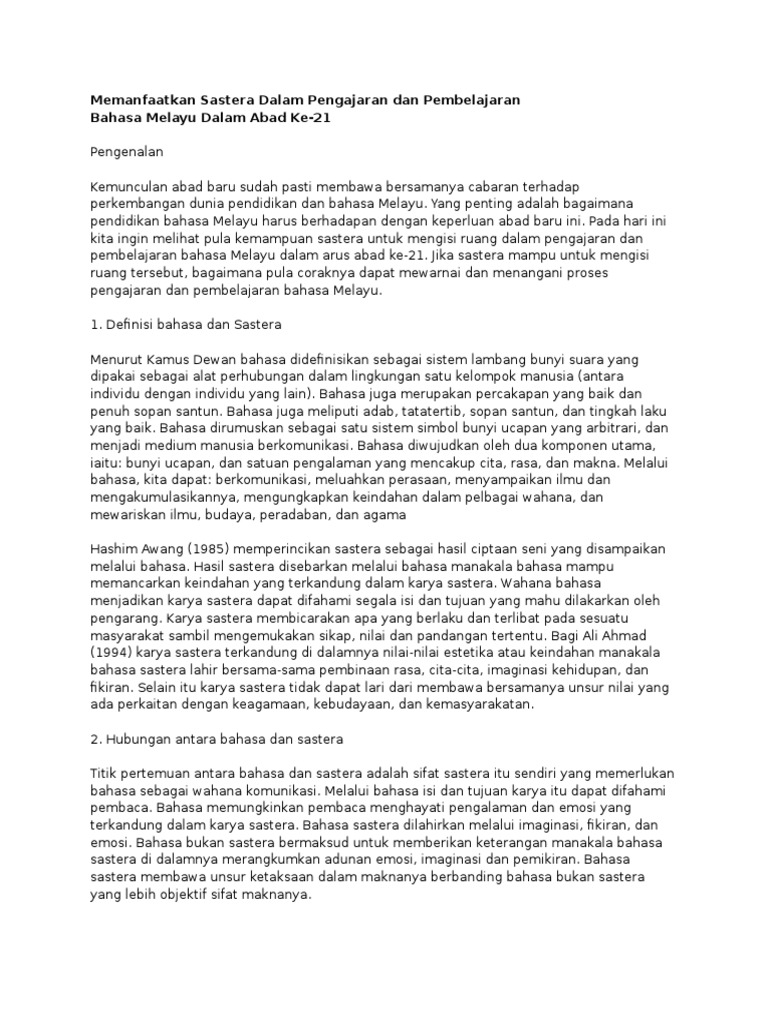 Memanfaatkan Sastera Dalam Pengajaran Dan Pembelajaran Pdf
