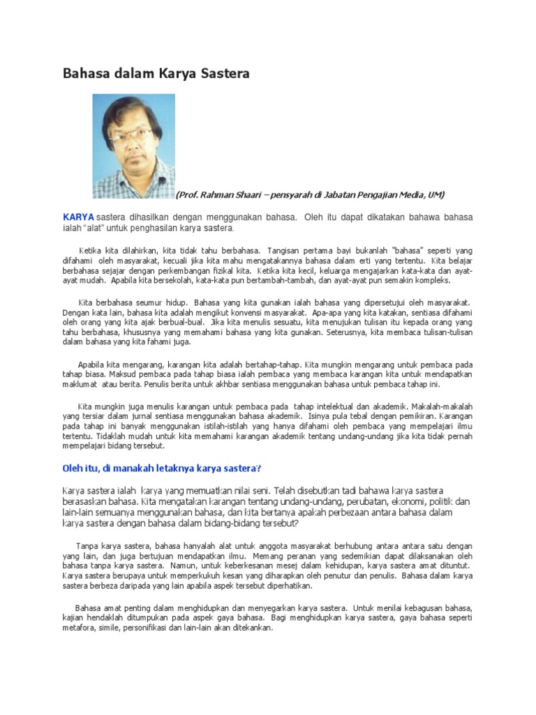 Bahasa Dalam Karya Sastera Pdf