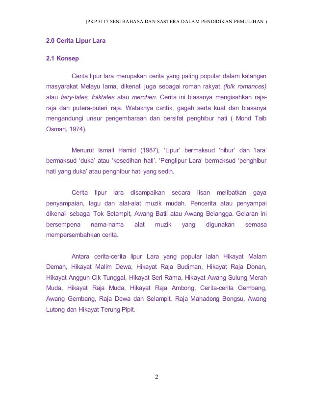 Buku garis panduan permohonan program akademik edisi 2 fasa 1 yang berikut. Ismail Hamid dalam bukunya Perkembangan Kesusasteraan Melayu Lama Penglipur membawa maksud penghibur manakala Lara pula bermaksud duka. Doc Peranan Bahasa Dan Sastera Umpama Irama Dan Lagu Hairi Suhaimi Academia Edu.