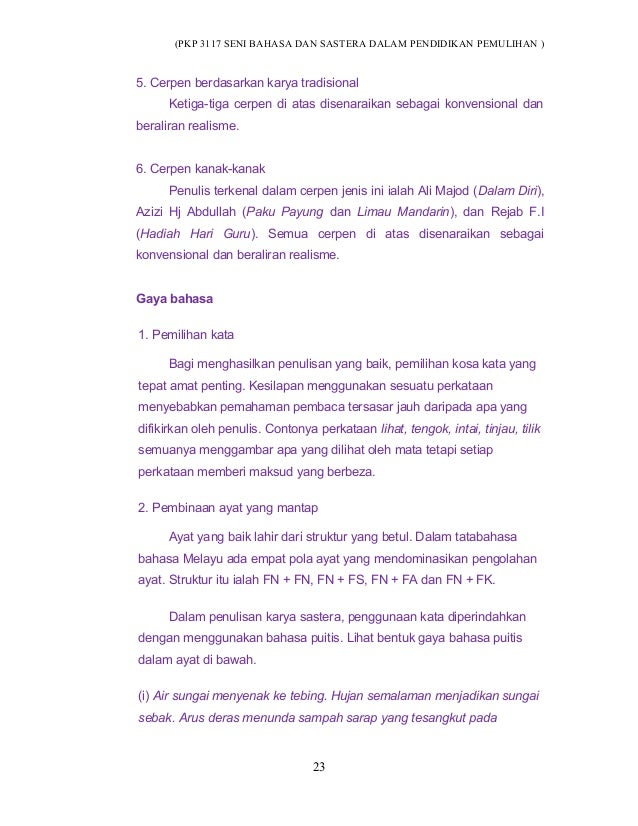 Pkp3117 seni bahasa dan sastera dalam pendidikan pemulihan. Pengenalan kepada aspek penggunaan bahasa yang indah dalam karya sastera Melayu membolehkan guru pelatih mengenali dan mempelajari keindahan dan seni bahasa dan sastera dalam pendidikan pemulihan. Frasa menuntut ilmu bukan mengongkong masyarakat kita dengan hanya membaca bahan-bahan berkaitan pendidikan dan pembelajaran bahkan juga berkaitan ilmu kehidupan sebagaimana yang terkandung dalam karya sastera yang terbahagi kepada. Sastera dalam bahasa Perancis.