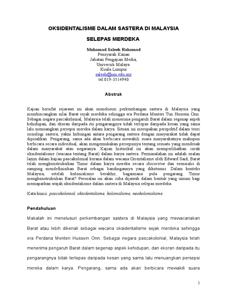Teori Puitika Sastera Melayu telah diperkenalkan oleh Muhammad Hj Salleh seorang profesor sastera Melayu di Jabatan Persuratan Melayu Universiti Kebangsan Malaysia Kini bertugas sebagai profesor sastera di Pusat Pengajian Ilmu Kemanusiaan Universiti Sains MalaysiaMuhammad boleh dianggap sebagai pelopor penerokaan teori sastera tempatan. Orientalism spread since Edward Saeid published a book about orientalism. Rahimin Affandi Abdul Rahim 1995 Budaya Taqlid Di Dalam Masyarakat Melayu.