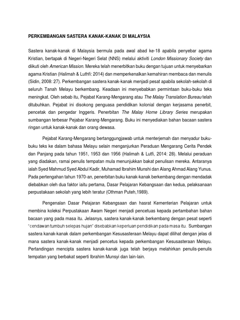 Hal ini kerana sastera awal kanak-kanak mampu memberi keseronokan dapat merangsang imaginasi dapat membantu mengenal dan memahami diri sendiri dapat memahami bahasa secara semula jadi dapat. Perkembangan Sastera Melayu di Malaysia. Hal ini kerana sastera awal kanak-kanak mampu memberi kan keseronokan dapat merangsang imaginasi dapat membantu mengenal dan memahami diri sendiri dapat memahami bahasa secara semula jadi dapat.