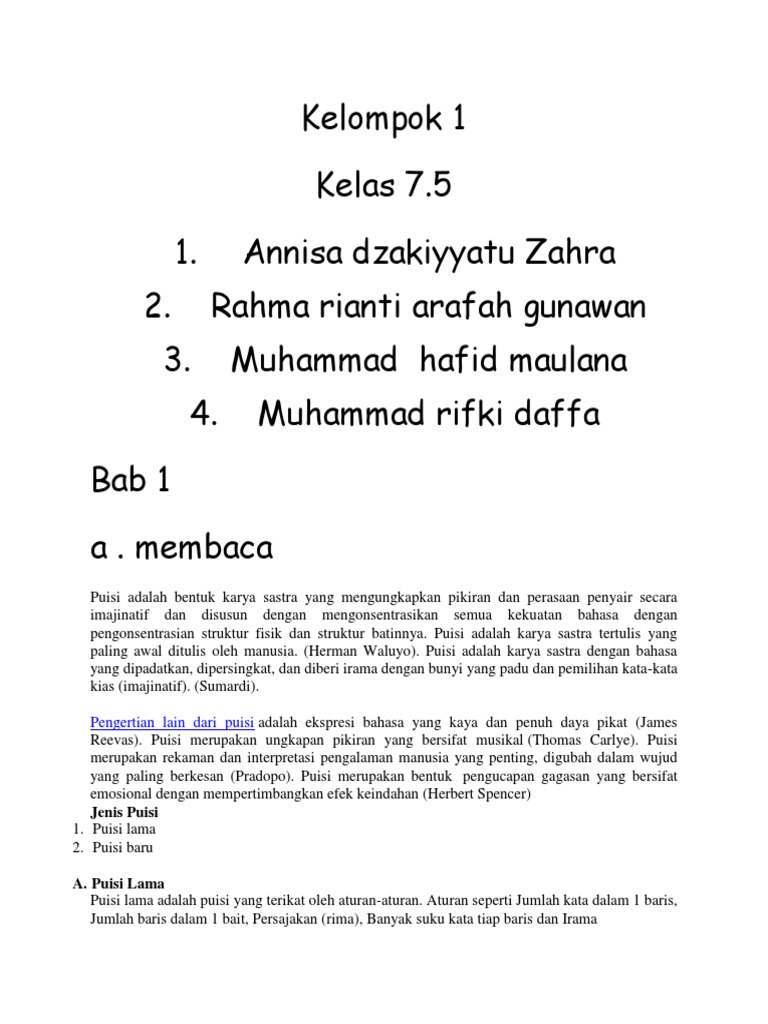 Bab I Pendahuluan Puisi Merupakan Karya Sastra Tertua Waluyo 1987 1 Waluyo Juga