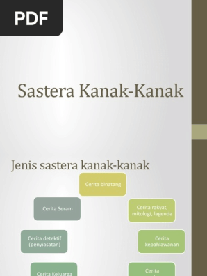 Manakala Siti Hajar Abdul Aziz 2009 menyatakan bahawa istilah genre berasal daripada bahasa Perancis yang bermakna jenis atau bentuk dan dalam bahasa Latin genus. Sastera kanak-kanak adalah karya sastera yang dihasilkan dalam bentuk buku yang boleh dibaca oleh kanak-kanak mengikut peringkat umur dan mampu menimbulkan keseronokan kepada mereka untuk membaca dan menghayati cerita-cerita dalam buku tersebut Ani Omar 2012. Melalui karya sastera seperti cerita Melayu klasik ini kanak-kanak boleh mempelajari mengapa sesuatu itu boleh dan tidak boleh dilakukan mengapa sesuatu itu boleh menggembirakan keluarga ataupun kawan yang bertujuan untuk memelihara perasaan orang yang disayangi mereka.