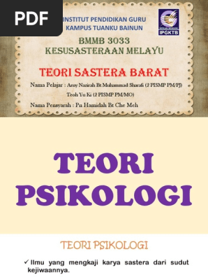 Psikologi sastra adalah kajian sastra yang memandang karya sebagai aktivitas kejiwaan Endraswara 201196. Pengguasaan teori dan pendekatan yang baik telah membantu kritikan-kritikan ini berjaya. Pada hakikatnya setiap manusia pada setiap zaman dan setiap tempat melakukan kegiatan bersastra.