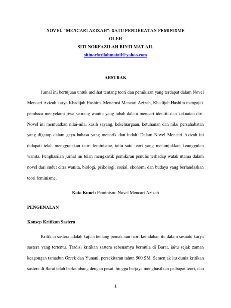 Jurnal Kata Kunci Teori Feminisme Novel Mencari Azizah Pdf