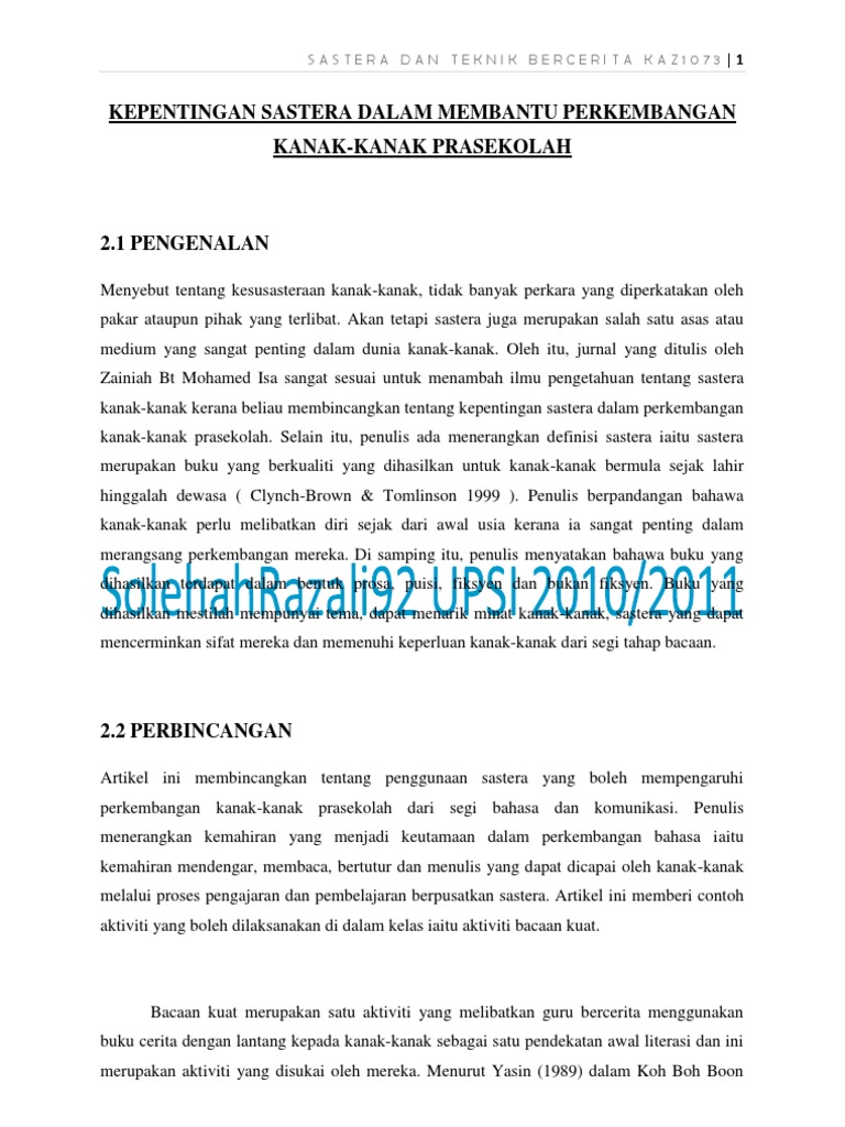 Kepentingan Sastera Dalam Membantu Perkembangan Kanak Kanak Prasekolah Pdf