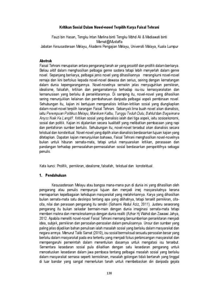 Cerpen dan Novel adalah salah satu karya sastra. 2 Kesusasteraan Melayu dalam konteks pendidikan ialah karya asal yang tertulis dalam bahasa Melayu berunsurkan keindahan dan kehalusan sama ada berbentuk novel cerpen drama sajak prosa tradisional atau puisi tradisional bagi mengimbangi intelek rohani emosi dan jasmani di samping memaparkan nilai kemanusiaan dan citra masyarakat. Nilai Estetika Dalam Karya Sastera.