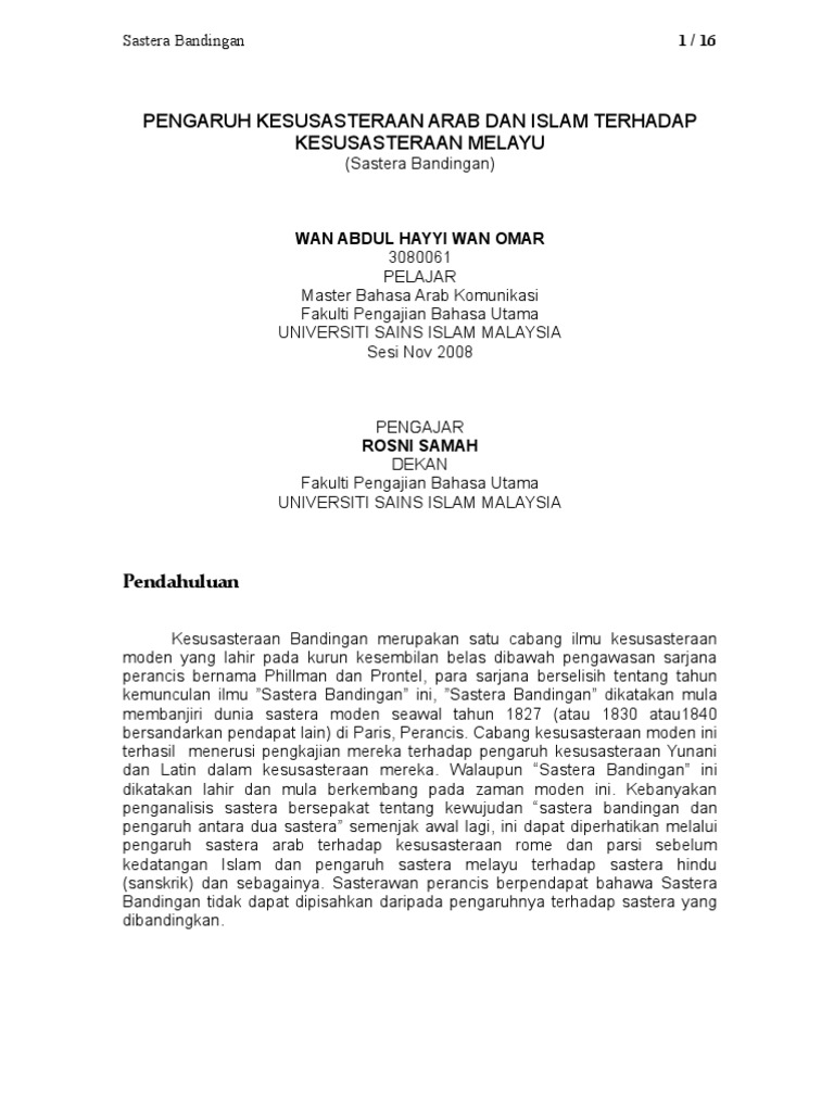 Sastera Bandingan Arab Melayu Pdf
