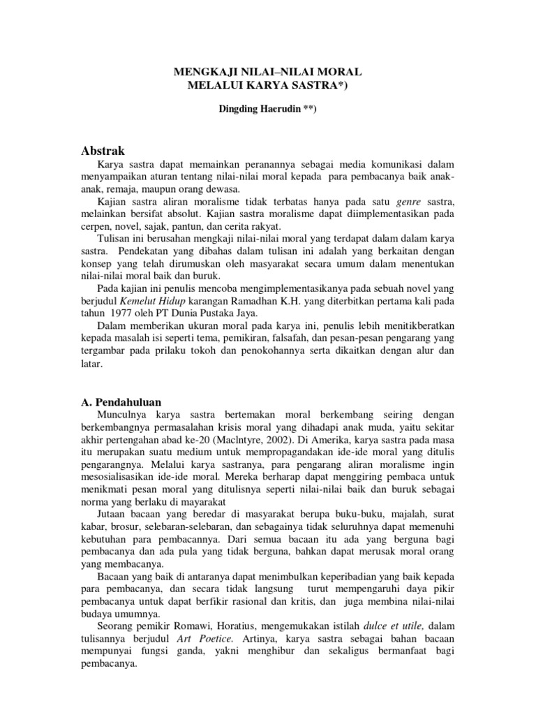 Mengkaji Nilai Moral Melalui Karya Sastra Pdf