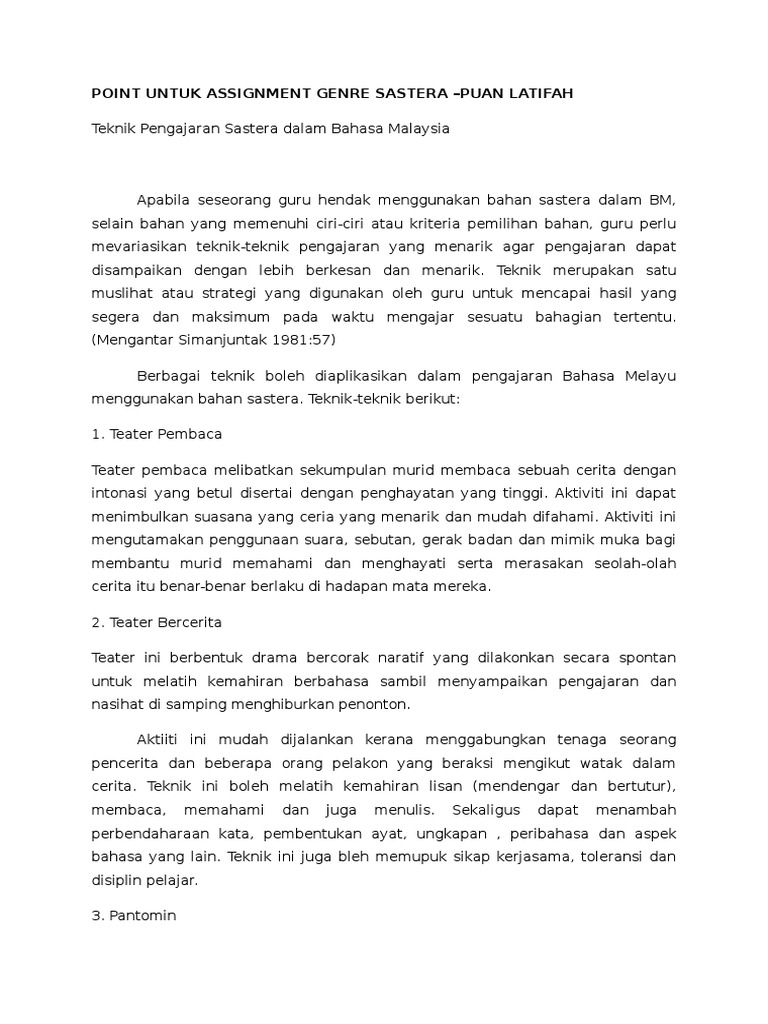 Point Untuk Assignment Genre Sastera Pdf