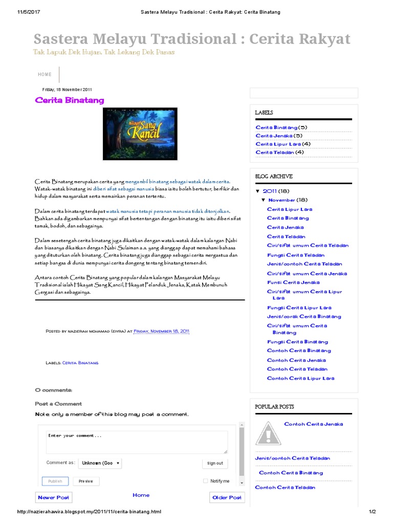 Sastera Melayu Tradisional Cerita Rakyat Cerita Binatang Pdf