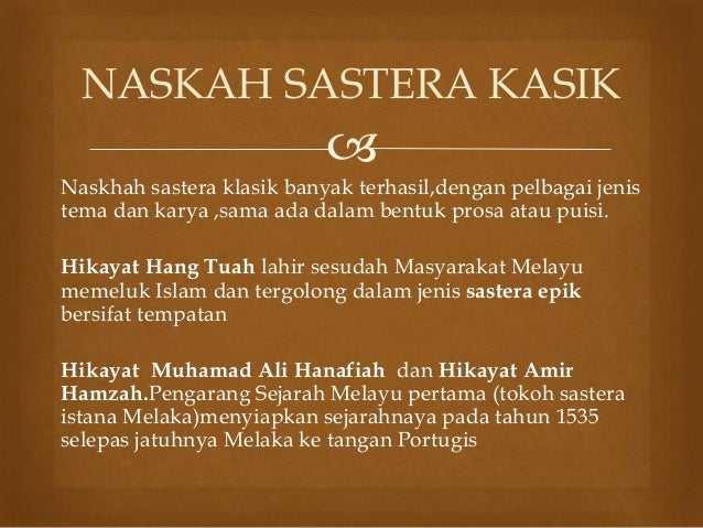 590 mentakrifkannya sebagai kesenian atau kesusasteraan yang lama atau yang mempunyai. Bahasa klasik kepada bahasa melayu standard -part2- Contributor. Sastera klasik merupakan sastera tertua yang disampaikan secara lisan dan diturunkan dari satu generasi ke generasai lain yang mempunyai unsur tokok-tambah.
