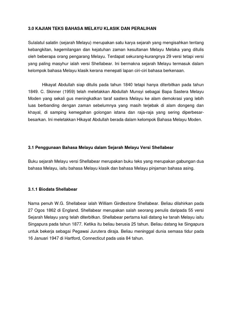 Kajian Teks Bahasa Melayu Klasik Dan Peralihan Pdf