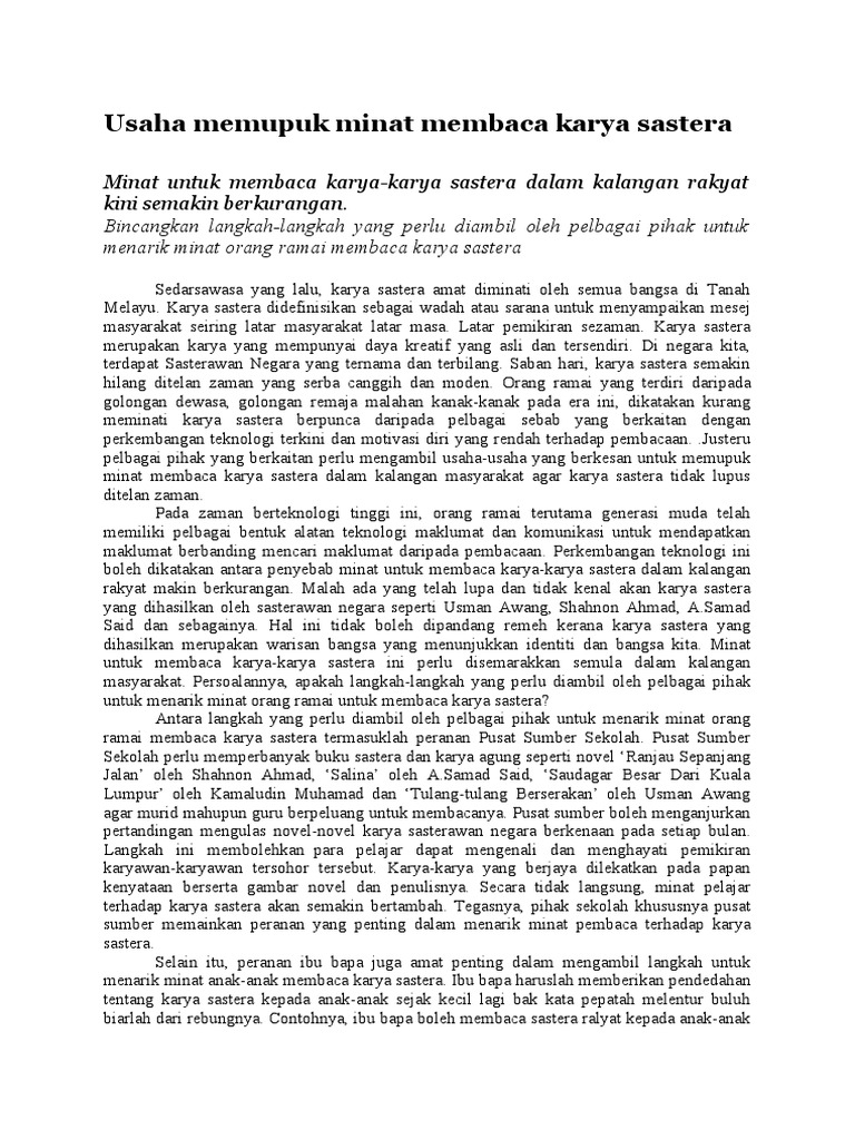 Usaha Memupuk Minat Membaca Karya Sastera Pdf