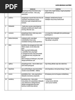 9 markah Contoh Jawapan. Gaya Bahasa Kesimpulannya calon sewajarnya mempunyai maklumat yang terperinci berhubung dengan tajuk perkembangan genre sama ada pada zaman sebelum perang mahupun zaman selepas perang. Dalam gurindam juga kadang-kadang terdapat ciri puisi seperti asonansi aliterasi dan gaya bahasa tertentu.
