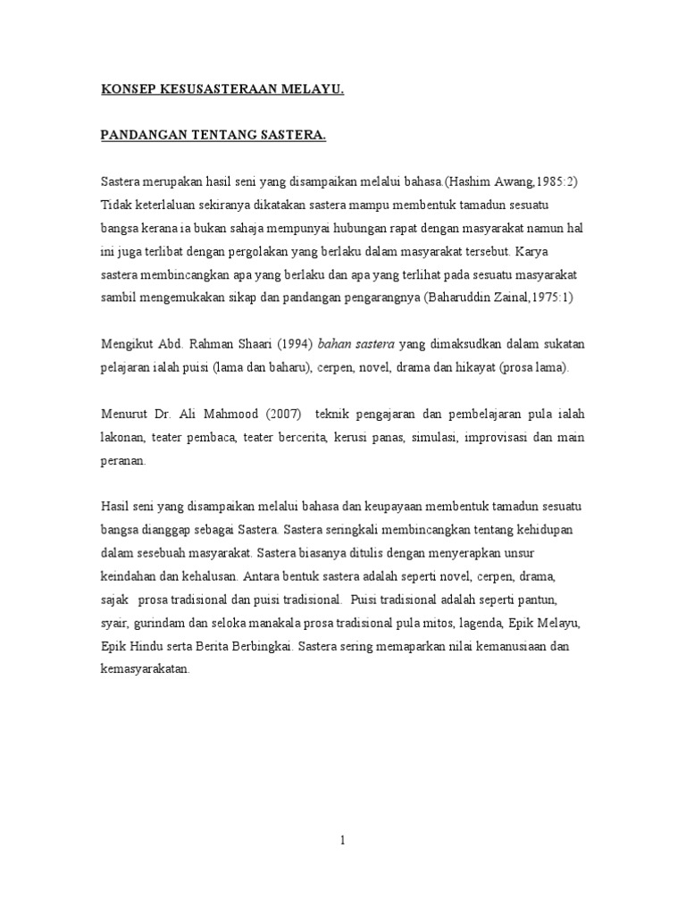 Untuk maksud ini beberapa bahan dan teks sastera akan dirujuk sebagai bahan analisis yang mewakili karya tradisional mahupun moden. Elemen-elemen inilah yang menyebabkan drama ialah sebahagian daripada cabang sastera. Hasil seni karya tulisan dalam bentuk prosa atau puisi yang mempunyai ciri-ciri keistmewaan tertentu.
