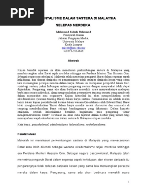 Oksidentalisme dalam Sastera Melayu Sebelum Merdeka hingga Era Mahathir Mohamad 2014. Sebelum Merdeka hingga Era Mahathir Mohamad. Oksidentalisme Dalam Sastera Melayu Sebelum Merdeka Hingga Era Mahathir Mohamad PDF Full.