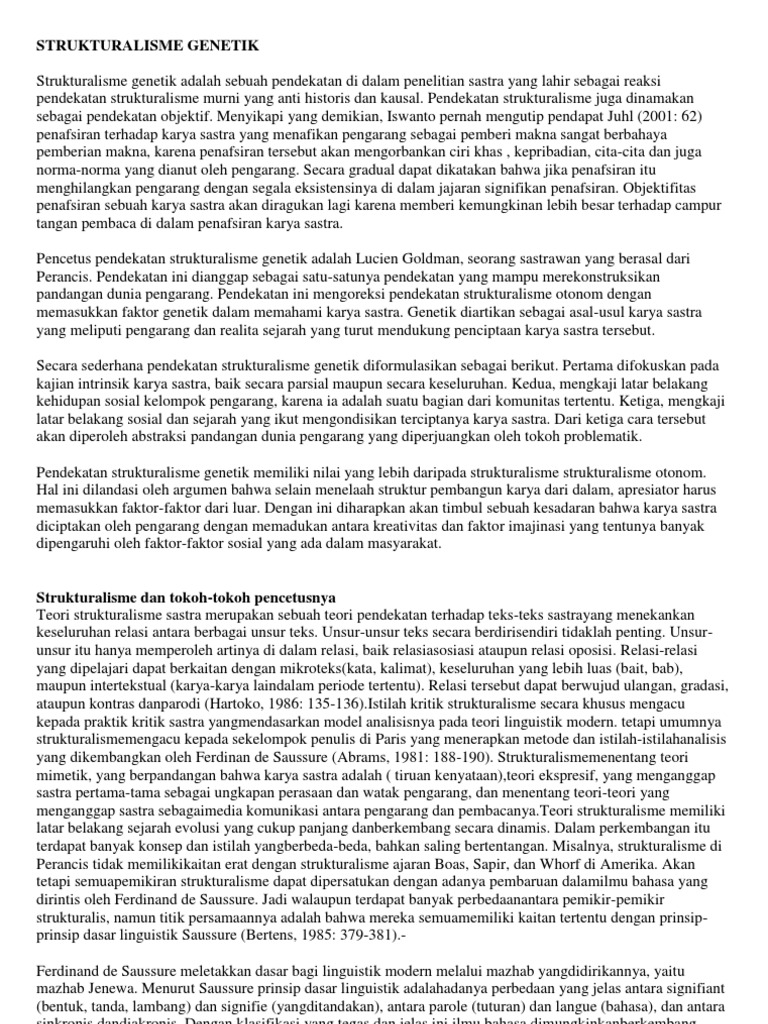 Menurut Syuhada 2019 pelopor dari teori strukturalisme adalah Levi-Strauss yang mengatakan bahwa strukturalisme adalah segala ilmu yang. Kenyataannya pada waktu melakukan pengkajian terhadap karya sastra ketiga disiplin ilmu sastra tersebut tidak dapat dipisahkan.