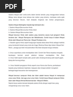 Nota sastera hikayat tingkatan 5. Contoh karya ialah Hikayat seri Rama dan Hikayat Pendawa Lima. Sastera hikayat dibahagikan kepada tiga kelompok yang meliputi hikayat berunsur Hindu berunsur campuran Hindu dan Islam serta Hikayat berunsur Islam. Lambang perpaduan rakyat jelata.