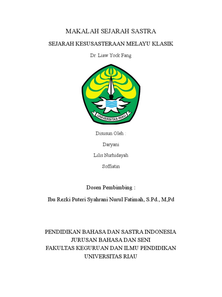Makalah Sejarah Sastra Kelompok 6 Pdf
