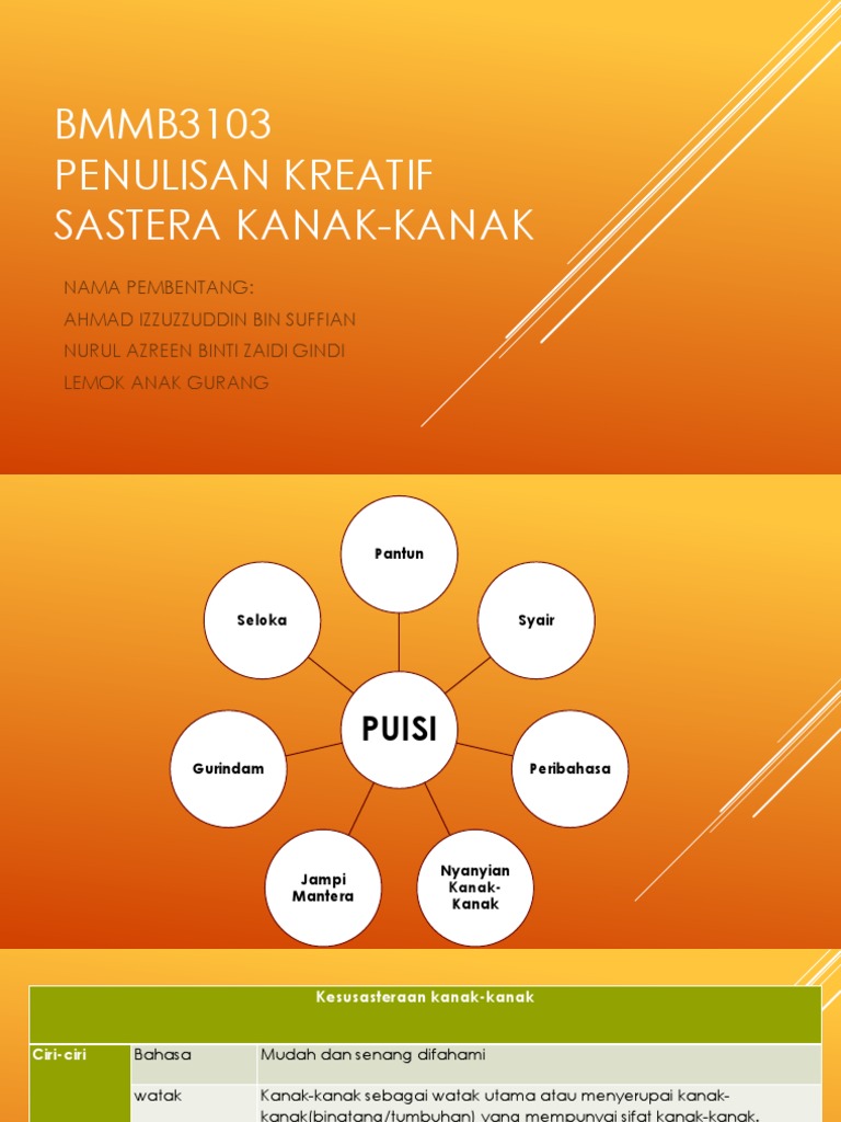 Guna buku bg tema tertentu Sedia sudut literasi Sedia koleksi buku kanak 2. Program pensiswazahan guru ppg ijazah sarjana muda perguruan ipgm modulpendidikan seni visual pendidikan rendah psv3103 kreativiti dan seni kanak-kanak institut pendidikan guru malaysia kementerian pelajaran malaysia berkuat kuasa pada jan 2011 kemaskini 1 disember 2009 modul ini diedarkan untuk kegunaan pelajar-pelajar yang berdaftar dengan bahagian. Othman Puteh 1987 Sastera Kanak-kanak dan Remaja.