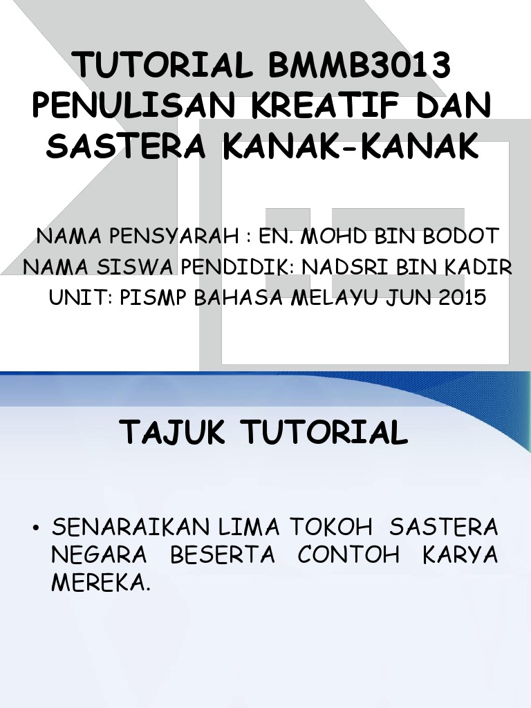 Ditulis mengikut kaca mata penulis dewasa dan tidak memenuhi konsep sastera kanak-kanak serta tidak memenuhi keperluan psikologi kanak-kanak. Save Save Tutorial Penulisan Kreatif Dan Sastera Kanak-kanak For Later. Sastera kanak-kanak merupakan bahan bacaan yang ditulis khas untuk sumber pengetahuan kanak-kanak.